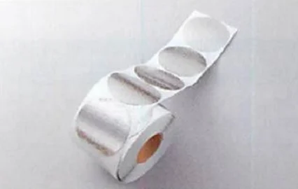 スピンドル座金の露出防止用粘着テープです。丸形ですので方向性がなく、ワンタッチで施工できます。